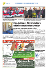 Seite 24 EMSTEKER NACHRICHTEN Fußsäcke für den Krippenwagen konnten dank eines unbe- Seit 40 Jahren ist Maria Schleifer im Kindergarten beschäftigt. kannten Spenders gekauft werden. Zum Jubiläum gab’s Blumen und Glückwünsche. Kiga-Jubiläum, Dienstjubiläum und ein unbekannter Spender Neues aus der St.-Johannes-Kindertagesstätte in Bühren Bühren (at) – Ein herzliches Dan- bieten viel- fältige Bewegungsmög- ihre täglichen Ausflüge in die Um- keschön möchten die Kinder und lichkeiten. Beim Bau von Schrägen, gebung machen zu können. Ein Erzieherinnen des St.-Johannes- Türmen, Brücken und Höhlen großer Dank geht an den unbe- Kindergartens Bühren ausspre- kommen sie jeden Tag bei den Kin- kannten Spender. chen. Im Mai 2013 wurde das 40- dern zum Einsatz. Ihr 40-Jähriges Dienstjubiläum jährige Kindergartenjubiläum Im Dezember 2013 konnten beging Maria Schleifer aus Em - Neue Turnmatten: Das Fest gefeiert. Dieses Fest ist allen in gu- durch eine großzügige Spende stek am 28.Februar im Kindergar- zum Kindergartenjubiläum ter Erinnerung. Von dem Erlös und Fußsäcke für die Krippenwagen ten St. Johannes in Bühren. Seit und großzügige Spenden durch großzügige Spenden vieler angeschafft werden. Die Kinder dem 1. April 1973 hat sie in diesem machten die Anschaffung Firmen konnten die ersehnten und Erzieher freuen sich, auch bei Kindergarten viele hundert Kin- möglich. Turnmatten gekauft werden. Diese niedrigen Außentemperaturen der liebevoll begleitet, unterstützt und erzogen. Unterbrochen hat sie ihre Arbeit nur durch einen elf- monatigen Sonderurlaub. Bereits am 1. April vergangenen Jahres wurde Maria Schleifer mit Blu- men, Liedern und Glückwün- schen von Vertretern der Kirche, den Kindern und den Erziehern überrascht. Alle bedankten sich für die ungewöhnlich lange Treue zu ihrer Einrichtung. Schnuppertraining beim SV Emstek Emstek. Für die kleinen Fußballer und, die es noch werden wollen, veranstaltet der SV Emstek ein Schnuppertrai- ning für Jungen und Mädchen der Jahrgänge 2008, 2009 und 2010. Das Training findet am Samstag, 12. April um 15 Uhr auf dem Sport- platz an der Ostlandstraße statt. Der Ansprechpartner beim SV Emstek ist Thomas Behrens, Tele- fon 04473/1607. Alle Kinder der ge- nannten Jahrgänge sind herzlich dazu eingeladen.