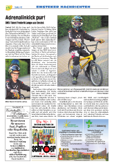 Seite 10 EMSTEKER NACHRICHTEN Adrenalinkick pur! BMX-Talent Frederik Lampe aus Emstek Emstek (bd). Mit der Frage nach tig, bis das perfekte BMX-Rad ge- dem richtigen BMX-Rad steigt Fre- baut ist. Dass der 15-Jährige Talent derik gleich ein in ein Fachgespräch besitzt, bestätigen ihm nicht nur über Rahmenbeschaffenheit, Grö- Trainer und Kenner, auch sein Lis- ße der Laufräder, Vor- und Nachtei- tenplatz in der Nordliga, bzw. dem le unterschiedlich geformter Lenk- „Nordcup“ - wie es unter Insidern stangen und die perfekte Überset- heißt, spricht dafür. Immerhin be- zung –Sattel und Radgabel nicht zu legt er dort nach seinem Debüt vor vergessen. Dem Laien wird sofort zweieinhalb Jahren einen hervorra- klar: Das passende BMX-Rad gibt genden vierten Platz! es nicht von der Stange, sondern ist Ein Freund machte Frederik das Ergebnis sorgfältig ausgesuch- Lampe auf den BMX-Sport in ei- ter Einzelteile. Erfahrung, Fachwis- nem Verein in Vechta aufmerksam. sen und das Talent, sich als Fahrer Seitdem fährt er ein- bis zweimal in selbst zu erkennen sind schon nö- der Woche auf die Rennbahn nach Vechta, um zu trainieren. Über 400 bis 600 Meter erstreckt sich die Huckelpiste, eine kurvenreiche Bahn auf festem Sanduntergrund. „Ich bin mittlerweile so schnell, dass ich durch die Hügel nur noch ‘wheele’ “, erklärt er begeistert. Heißt: Nur der Hinterreifen hält Kontakt zum Boden. „Anfangs wird noch ’gepusht’, um durch die Hügel zu fahren. Dabei kann man mit zu- sätzlichem, kraftvollem Einsatz der Arme an Fahrt gewinnen“, - das ist die Fahrvariante mit beiden Rädern am Boden. Nach seinen Zielen gefragt, ist er Stürze gehören zum Tagesgeschäft, doch Protektoren am Körper ganz bodenständig: „Ich möchte und ein Schutzhelm können ernsthafte Folgen von Stürzen meist Spaß daran haben. Mehr nicht.“ verhindern. Fotos: Deeken Trotzdem hat er sich einen Trai- ningsplan aufgestellt, mit dem er Spannung kaum ertragen: „Dann Mit Taktik und Furchtlosigkeit Kraft und Ausdauer weiter verbes- sehe ich lieber weg.“ wird um die besten Ränge gefightet. BMX-Talent Frederik Lampe. sern kann. Und zukünftig sollen Tatsächlich geht es bei den Ren- Für Sprünge und Tricks ist auf die- auch Rennen im Ausland im Ter- nen hochspannend zu. Acht Teil- ser Strecke keine Zeit, wenn bei bis minkalender stehen. Die Familie nehmer einer Altersklasse starten zu 40 km/h über die Piste gebrettert Saalbetrieb reist mit und genießt die Atmo- gleichzeitig und kämpfen direkt wird. Nur mit richtig weiten Sprün- Reinhold sphäre auf dem Rennplatz, wo ge- nach dem Startschuss um die erste gen kann Zeit gewonnen werden. Feldhaus grillt und viel gelacht wird. Nur Position. Bald schon wird die Bahn „Das ist dann der Adrenalinkick wenn Sohn Frederik steil in die Kur- enger und kurvenreich, dann ist pur“, schwärmt Frederik, und man Brooklandstr. 2, 49685 Halen ven fährt, kann seine Mutter die Überholen nur schwer möglich. sieht ihm die Freude daran an. Tel.: 04473/1322 Reservieren Die Nr. 1 Sie unseren bei Kids und Teens im Saal, Papillon Oldenburger Münsterland! oder Kegelbahn. Damit Ihre Gäste nicht nur satt, sondern auch verwöhnt werden, bieten wir Ihnen vom kleinen Empfang bis hin zum leckeren Büfett, von rustikal bis herzhaften Spezialitäten und bis zur süßen Verführung Kids + Teens alles, was Gaumen und CLOPPENBURG · VECHTA · EMSTEK Augen begeistert.