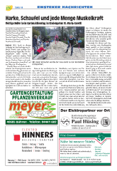 Seite 14 EMSTEKER NACHRICHTEN Harke, Schaufel und jede Menge Muskelkraft Fleißige Helfer beim Gartenaktionstag im Kindergarten St.-Maria-Goretti Ein Erfahrungsbericht von den Eltern „ihren“ Kindergarten Familie Raker (Höltinghausen), zeigen zu können. Es wurde der Familie Hermeling (Garthe), Kräutergarten bestaunt, genauso Familie Prenger (Emstek), wie das Bällebecken, die Spiel- und Familie Böske (Emstek), Familie Kletterhäuschen, die kleinen Kin- Brinkhus (Garthe) und Familie dertoiletten oder auch die große Bockhorst (Emstek) Rutsche auf dem Spielplatz. Getränke für Eltern und Kin- Emstek (kb). Auch in diesem dern wurden vom Kindergarten Frühjahr hat der Kindergarten St.- bereit gestellt, so dass zwischen- Maria-Goretti zum großen Gar- zeitlich auch die Möglichkeit be- tenaktionstag aufgerufen. Das Au- stand, bei einer kleinen Erfri- ßengelände sollte wieder in schungspause die anderen Eltern „Schuss“ gebracht werden. Viele kennenzulernen. Nach zweiein- Familien machten sich mit Schub- halb Stunden war die Arbeit dann karren, Harken, Besen und ande- getan und der Vormittag endete in ren Gartengeräten „bewaffnet“ auf Mit vielen Schaufeln wurde der neue Sand zu den Sandkästen einer entspannten, geselligen Run- den Weg zum Kindergarten. transportiert. de bei leckeren Bratwürstchen und Kinder, Eltern und auch die Mit- Salat. Mit einem „guten Gefühl im arbeiter des Kindergartens waren Erstaunt hat uns Helfer das rie- Waldfläche zum Spielen und To- Bauch“ ging es dann auch wieder an ihrem freien Tag gekommen um sige Außengelände des Kindergar- ben mit Rutsche und anderem für alle Helfer nach Hause… zu helfen. Und es gab viel zu tun: Es tens, sieht man von der Straße Spielgerät sowie zur rechten Seite Ein schöner Nebeneffekt der wurden circa 10 Kubikmeter neuer doch nur den Sandkasten-Bereich, noch ein eigener Fußballplatz so- ganzen Aktion: Die Kinder erzähl- Holzschredder verteilt, 30 Kubik- sowie den vom großen Kindergar- wie eine große Hängeschaukel. Ein ten zu Hause von ihrem Vormittag meter Sand musste in die Sandkä- ten-Spielplatz abgetrennten Spiel- toller Natur-Spielplatz – hier kön- beim Gartenaktionstag, und selbst sten geschaufelt werden, es wurden bereich für die ganz Kleinen der nen sich die Kinder wirklich austo- bei den Großeltern wurden alte Er- neue Blumen gepflanzt und der Krippen-Gruppe. Hinter den ben! innerungen wach gerufen. „Ach, Spielplatz von Laub und alten Ge- Sandkästen für die Großen befin- Allerdings hieß diese große Flä- weißt du noch, wie wir damals mit- äst befreit. det sich aber noch eine große che auch viel Platz zum Sauberma- geholfen haben, als unsere Kinder chen. Zusammenarbeit war also noch klein waren?“ Der Gartenak- GARTENGESTALTUNG gefragt. Die Kinder harkten und tionstag des Kindergartens St.- fegten genau wie ihre Eltern und Maria-Goretti ist eine tolle Aktion PFLANZENVERKAUF Erzieher, aber das Lachen kam bei mit langer Tradition in Emstek- der ganzen Aktion nicht zu kurz. feiert der Kindergarten doch bald Gemeinsam macht so ein Tag eben schon sein 50-jähriges Bestehen. doch mehr Spaß- war es doch auch Wir sind im nächsten Jahr auf je- für die Kinder eine tolle Erfahrung den Fall wieder dabei... Der Elektropartner vor Ort Elektro-Beleuchtungskörper Alarmanlagen-Antennenbau 49685 Bühren · Telefon: 04447-602 Paul Hüsing 49685 Bühren · Dorfstraße 6 Telefon (0 44 47) 3 07 Elektro | Heizung | Sanitär Installationen | Wärmepumpen Kundendienst | Service | Beratung Wiesenring 2 | 49685 Emstek | Tel. 04473 / 2810 | Fax 04473 / 947925 E-Mail: info@hinners-elektro.de | www.hinners-elektro.de
