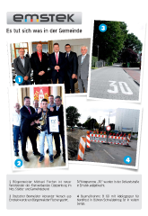 3 Es tut sich was in der Gemeinde 1 4 2 1 Bürgermeister Michael Fischer ist neuer 3 Piktogramme „30“ wurden in der Ostlandstraße Versitzender des Kreisverbandes Cloppenburg im inEmstekaufgebracht. Nds.Städte-undGemeindebund 2 Deutscher Boxmeister Alexander Wersch aus 4 Baumaßnahme B 69 mit Abbiegespur für Emstekwurdevon Bürgermeister Fischer geehrt. Nordfrost in Bühren/Schneiderkrug ist in vollem Gange.