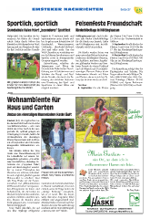 EMSTEKER NACHRICHTEN Seite 27 Sportlich, sportlich Felsenfeste Freundschaft Grundschule Halen feiert „besonderes“ Sportfest Kinderbibeltage in Höltinghausen Halen (pb). Ein Sportfest der be- higkeit in 13 weiteren Spiel- und Höltinghausen (aw). Auch in die- der Klassen 5 bis 7 von 15 Uhr bis sonderen Art führte die Grund- Sportstationen unter Beweis stel- sem Jahr finden Kinderbibeltage 21 Uhr bei der Teichwirtschaft in schule Halen durch: Neben den len. So gab es zum Beispiel eine Af- für die Kinder aus Emstek, Halen Ahlhorn klassischen Wettkampfarten Wurf, fenschaukel, Wassertransport, und Höltinghausen statt. Im Mit- 5. Septemberfür alle Kinder der Sprung und Lauf konnten die Kin- Goldsuche, Bierdeckel-Zielwurf, telpunkt wird Petrus stehen. Klassen 3 und 4 von 10.30 Uhr bis der ihr Geschick und ihre Teamfä- Dart und vieles mehr. Um den 17 Uhr im Pfarrheim/Kindergar- WIR-Charakter zu verstärken, wa- Die Kinder werden Petrus von ten Höltinghausen ren die kleinen Sportlerinnen und ganz unterschiedlichen Seiten ken- 6. Septemberfür alle Kinder der Sportler zuvor in altersgemischte nenlernen: als felsenfest überzeug- Klassen 1 und 2 von 10.30 bis 17.00 Gruppen eingeteilt worden. ten Anführer, mutlosen Angstha- Uhr im im Pfarrheim/Kindergar- Unterstützung erhielten die sen, glühenden Verehrer und treu- ten Höltinghausen Lehrerinnen und Eltern der losen Freund, als sturen Dickkopf Grundschule Halen bei der Durch- und als Mensch mit Durchhalte- Die Anmeldung erfolgt über die führung von 20 Schülerinnen und vermögen. Kurzum: Petrus ist ein Kindergärten und Schulen. Für Schülern der Haupt- und Real- liebenswerter Mensch mit Ecken Fragen stehen Annette Wilgen (Te- schule Emstek, die durch die Be- und Kanten, der es in sich hat. Pe- lefon 04473/1668 oder 746), Ger- treuung der einzelnen Stationen trus, das ist einer wie du und ich! trud Kalvelage (Telefon 04473/ Mit großem Einsatz holten die eine Umsetzung des Spiel- und 947086) und Agnes Beckmann Kinder für ihre Mannschaft die Sportfestes in dieser Weise erst Termine: (Telefon 04473/947896) zur Verfü- bestmögliche Punktzahl. möglich machten. 4. September für alle Kinder gung. - Anzeige - - Anzeige - Wohnambiente für Haus und Garten Gärtner Umbau des ehemaligen Blumenladens Haske läuft mit Herz Emstek (bd). Ein regelrechtes La- denkarussell dreht sich um Emsteks Geschäftsimmobilien – sehr zum Wohle des Ortes. Auch in der Lan- gestraße 42, optimal gelegen am Ortseingang in Emstek, laufen die Umbauarbeiten des ehemaligen Blumenhauses Haske auf Hochtou- ren. Ab September wird dort stim- mungsvolles Wohnambiente ver- breitet. Mit Monika Emken hat Tony Haske eine Wunschbesetzung für Mein Garten- die Ladenfläche auf seinem Fir- mengelände gefunden. „Die erfah- ein Ort, an dem ich in rene Geschäftsfrau, ehemalige Be- treiberin der „Cappelner Diele“, vollkommener Harmonie lebe.. passt mit ihrem Angebot wunder- bar zu meiner Philosophie, den Jeder Mensch wünscht Gärtner mit Herz verwandeln Orte in Menschen ein schönes, individuel- Freuen sich auf die Zusammen- sich ein verzaubertes solche Zauberlandschaften. Von der les und möglichst glückbringendes arbeit: Tony Haske und Monika Fleckchen Erde, an dem Idee über die Ausführung bis hin zur er die Seele baumeln las- Pflege fachgerecht zu einem exzel- Wohnumfeld zu schaffen“, freut Emken. sen kann. Ein gut geplanter Garten lenten Preis-Leistungsverhältnis. sich Tony Haske auf die Zusam- von Tony Haske ist so ein wunderba- Wir sind regionaler Marktführer menarbeit. Auf „Wohndekoration Geschichte des Gartenbaubetriebes rer Freiraum, in dem sich Stress und bei der Erstellung und Pflege traum- Hektik in Gelassenheit verwandeln. hafter Gärten im Süd-Oldenburger für Haus und Garten“ mit spannen- in Emstek zurückblickt, freut sich Eine Zauberlandschaft, die unsere Münsterland. Achten Sie auf unser den Arrangements im Innen- und einfach, wenn die Dinge sich in die Fantasie beflügelt und uns die Welt Zeichen. Außenbereich, die die beiden im „richtige Richtung“ entwickeln, mit anderen Augen sehen lässt. Wir Ihr Tony Haske Wechsel der Jahreszeiten und zu be- wie er es nennt. Wer ihn kennt, sonderen Anlässen umsetzen wer- weiß, dass seine Ansprüche dabei den, können die Kunden schon exklusiv und anspruchsvoll sind. heute gespannt sein. Gemeinsame Monika Emken freut sich auf ihre Events sind geplant! Kunden, die neue Herausforderung Tony Haske jedenfalls, der auf und kann auf die Unterstützung des Tony Haske · Zum Gogericht 3 · 49685 Emstek eine über 50jährige erfolgreiche „Gärtners mit Herz“ zählen. Telefon 0 44 73/97 27-0 · www.gaertnermitherz.de
