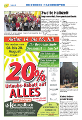 Seite 32 EMSTEKER NACHRICHTEN Zweite Halbzeit Programm der Kath. Frauengemeinschaft Emstek Emstek(bs). Das Programm der ka- Bethen tholischen Frauengemeinschaft n 8. August Emstek für das zweite Halbjahr steht Tagesausflug nach Holland, Ab- unter dem Motto: „Bitte nicht um fahrt 8 Uhr beim Pfarrheim eine leichte Bürde – bitte um einen n 6. September starken Rücken“, ein Zitat von Theo- 9.30 Kirche in Stapelfeld dore Roosevelt. Auch Nicht-Mitglie- 25 Jahre kfd Landesverband Ol- der sind herzlich zu den Veranstal- denburg tungen eingeladen. n Oktober Höhepunkt im ersten Halbjahr: Die kfd-Frauen besuchten die n 29. Juli Messe und Vortrag. Weitere In- Firma Dr.Oetker in Bielefeld. 19 Uhr Landesfrauenwallfahrt formationen werden zu einem später Zeitpunkt bekannt gege- ben. n 6. November 19.30 Uhr Weihnachtliches Ba- steln im Pfarrheim n 3. Dezember 19.30 Uhr Adventsfeier im Pfarrheim n 16. Dezember 9 Uhr Frauenfrühstück im Landcafe Repke Anmeldungen sind erforderlich beim Offizialat Frau Witte Tel. 04441/872285. Die Büchertauschbörse war ein voller Erfolg. Kleine Aktion - großer Erfolg Bühren(bs). Auf der Büchertausch- börse konnte die Frauengemein- schaft aus Bühren 250 Euro und jede Menge Bücher für den SKF erwirt- schaften. Als nächste Veranstaltung ist am 29. Juli eine Radtour mit Pick- nick und Abschluss auf der Landes- frauenwallfahrt in Bethen geplant. Der Vorstand hofft auf rege Beteili- gung und schönes Wetter.