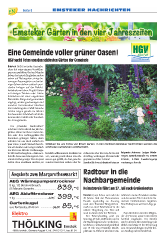 Seite 8 EMSTEKER NACHRICHTEN Emsteker Gärten in den vier Jahreszeiten Eine Gemeinde voller grüner Oasen! HGV sucht Fotos von den schönsten Gärten der Gemeinde Emstek (bd). Fast jeder Gartenbe- sitzer hat seine eigenen Vorstellun- gen vom perfekten Garten. Manche lieben das typisch Englische, andere setzen auf Naturgarten, einige be- vorzugen Bauerngärten und seit ei- nigen Jahren stehen asiatisch-puri- stische Anlagen auf der Beliebt- heitsskala weit oben. Es gibt Gärten mit riesigen Teichen oder kleine Schätzchen mit einer ungeahnten Blütenfülle. Einige sind geometrisch angelegt, andere geschwungen und mancher Gartenbesitzer überlässt die Gestaltung dem Zufall. Manche Gärten zeigen gerade im Winter ihre besondere Schönheit mit struk- turierendem Gehölz oder kunstvol- len Arrangements. Die „Emsteker Nachrichten“ möchten Gärten durch das Jahr be- gleiten. Wenn Sie ihren Garten lie- ben oder Ihre Lieblingsplätze für besonders gelungen halten, dann schicken Sie uns doch einfach ein paar Fotos. Je nach Wunsch berich- Schicken Sie uns Fotos von Ihrem Garten. In den nächsten Emsteker Nachrichten werden die ten wir darüber oder zeigen einfach schönsten Aufnahmen veröffentlicht. nur die Fotos. Mit der Herbstausga- be 2014 soll es losgehen – dann wer- herzlich willkommen! Erzählen Sie richten Sie über die Zeit, die Sie mit folgende Adresse: Ludger Wede- den die Fotos aus dem eigenen Gar- z.B., warum gerade dieses Foto Ih- der Pflege verbringen. Wir sind sehr meyer, Antoniusstraße 10, 49685 ten im Herbst gezeigt. Wer ein paar nen so gut gefällt, ob dort ganz be- gespannt auf Ihre Gärten! Emstek, E-Mail: l.wedemeyer@ Zeilen dazu erwähnen möchte, ist sondere Raritäten stehen oder be- Senden Sie Ihre schönsten Fotos an wedemeyer.lvm.de Radtour in die Angebote zum Margarethenmarkt AEG Wärmepumpentrockner Nachbargemeinde 8 kg, 1/2 Stromverbrauch, 55 Monate Garantie ................................839,-€ Heimatverein fährt am 27. Juli nach Großenkneten AEG Ablufttrockner Emstek (me). Schon seit mehr als teführerin zu den Emstekern stoßen 7 kg .............................................. 429,- 399,-€ 20 Jahren lädt der Heimatverein und die weitere Fahrt durch die Ge- Gartenkugel Emstek regelmäßig am Sonntag meinde Großenkneten begleiten. nach dem Emsteker Margarethen- Eine Kaffeepause wird es in Sage ge- aus Terracotta, Ø 40 cm ..................98,50 85,-€ markt zu einer Fahrradtour in die ben. nähere Umgebung ein. Dies soll Elektro auch in diesem Jahr der Fall sein. Zum Mitfahren sind die Mitglie- Der Fahrradausflug wird am der des Vereins sowie Interessierte Sonntag, 27. Juli, stattfinden und in herzlich eingeladen. Die Strecke die Nachbargemeinde Großenkne- wird in diesem Jahr etwas länger als THÖLKING Emstek ten führen. Gestartet wird pünktlich üblich und etwa 35 bis 40 km lang um 13 Uhr vom Emsteker Markt- sein. Voranmeldungen sind für die- 49685 Emstek, Clemens-August 4, Tel.: 04473 / 371, Fax: 61 94 platz aus. In Ahlhorn wird eine Gäs- sen Ausflug nicht erforderlich.