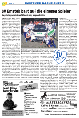 Seite 14 EMSTEKER NACHRICHTEN SV Emstek baut auf die eigenen Spieler Die gute Jugendarbeit des SV Emstek trägt langsam Früchte Emstek (hr). Seit Jahren verfolgt Cloppenburg. der SV Emstek das Ziel, seine Ju- Nach den bisher gespielten Par- gendmannschaften gut auszubil- tien in dieser Saison kann man lei- den. Die gemeinsame Jugendarbeit der noch keine Konstanz im Spiel mit dem SV Höltinghausen zahlt erkennen, Spielanlange und Ein- sich nun aus. Die eigenen Talente satz stimmen jedoch. Trainer Ralf bleiben im Verein und schaffen Pasch und Co-Trainer Stefan nicht selten den Sprung in die 1. Schütte bereiten ihre Jungs auf je- Herrenmannschaft. Spielgemein- des Spiel gut vor und stellen sie auf schaften beider Vereine spielen von die Gegner gezielt ein, doch die Un- der A- bis runter zur C-Jugend auf erfahrenheit und die noch fehlen- Bezirksebene. Die Möglichkeit, in den Kaltschnäuzigkeit vorm Tor diesen Klassen zu spielen, zieht lassen nicht immer etwas zählba- wiederum Jugendliche aus den res dabei herausspringen. Aber da- Nachbarvereinen an, was die Qua- raus können die sehr jungen Spie- lität der Mannschaften noch stär- ler nur lernen und man muss mit ken kann. ihnen etwas Geduld haben. In ei- Der SV Emstek baut auf die ei- nigen Spielen, wie z.B. gegen den genen Spieler. So hat sich der Al- favorisierten SV Bevern, konnte tersdurchschnitt mit den Jahren man schon sehen, wohin die Reise drastisch verjüngt, auf einen Wert gehen kann. Dieses Spiel ging von gerade einmal 21,9 Jahren. Von Die intensive Jugendarbeit zahlt sich aus. In der 1. Herren- klar mit 3:0 an den den 20 Spielern im Kader, von de- mannschaft des SV Emstek spielen 14 Fußballer, die aus SV Emstek, worü- nen 14 aus Emstek stammen oder Emstek stammen oder sich hier angesiedelt haben. ber sich Betreuer sich in Emstek angesiedelt haben, Norbert Niemöller ist nur ein Spieler 30 Jahre alt: der kam seinerzeit auch direkt aus der und Raphael Hermes, der besonders freute. Kapitän der Mannschaft, Marcus Jugend und wurde gleich zum wieselflinke Philip Ah- Wenn Sie nun ein Kunisch. Er hat früher u.a. für Dy- Leistungsträger. Heute ist er einer rens im Sturm zusam- wenig neugierig auf namo Dresden in der 3. Liga gegen der besten defensiven Mittelfeld- men mit Moritz Born- dieses Team gewor- den Ball getreten und wohnt mit spieler in der Liga. Niklas Südbeck, horst sowie Dennis den sind, laden wir seiner Familie in Emstek. Zusam- Janis Niemöller, Niklas Bernd- Westerhoff und Mi- Sie ins Stadion an der men mit Stefan Niemann (25 meyer: Schon ihre Väter bzw. Groß- chael Niemann, die sogar als All- Ostlandstraße ein. Jahre) bringt er die meiste Erfah- väter standen für ihr Dorf auf dem round-Kräfte eingesetzt werden Früher wurde von den Zuschauern rung mit ins Team. Kaum jünger Fußballplatz. Die vielen jungen können. Als „Azubi“ zwischen den immer ein Mangel an Emsteker und als sicherer Rückhalt im Tor, Spieler, die im letzten oder diesem Pfosten steht der noch in der Ju- Jungs beklagt. Doch das ist die Ver- Björn Klausing. Jahr die A-Jugend verließen, wis- gend spielende Nils Többe zur Ver- gangenheit. Die Bezirksliga, in der Weitere bekannte Emsteker Na- sen sich teilweise auch schon auf fügung. jeder fast jeden schlagen kann, bie- men finden sich im Aufgebot. Den- ihren Positionen im Herrenbereich Doch mit 14 Spielern lässt sich tet zahlreiche spannende Derbys, nis Ruholt, der in seiner fünften zu behaupten. Die beide Defensiv- leider keine Bezirksliga-Saison be- z.B. gegen SV Höltinghausen, BV Saison das blau-weiße Trikot trägt, Spezialisten Raphael Wedemeyer streiten. Jens Nöh, der im dritten Garrel oder TuS Emstekerfeld. Das Jahr für den SVE spielt, kam aus Rahmenprogramm ist, auch wenn Emstekerfeld und fühlt sich sehr das Clubhaus in die Jahre gekom- wohl. In diesem Sommer kamen men ist, durchaus empfehlenswert. noch der erfahrene Adzija Taci (28) Bratwurst, kühle Getränke, Kaffee sowie Arthur Stockmann und Alex und der zumeist selbstgebackene Lindt vom SV Bevern und die jun- Kuchen runden den Nachmittag gen Talente Jonas Büssing (Halen) ab. Also bis bald… wir sehen uns auf und Benjamin Winkler vom BV dem Platz! Party-Saal-Vermietung Saalbetrieb Backhaus Außer-Haus-Service Lange Straße 11 49685 Emstek Tel. 04473/316 KIRMESSONNTAG Kaffee & Kuchen selbst gebacken ab 17.30 Uhr Lendchen zum Sattessen mit Salatbüfett Emsteker Str. 35 · 49685 Emstek/Drantum Entenbrust in verschiedenen Variationen Tel. 0 44 73 - 10 91 · Fax 0 44 73 - 24 20 www.klaene-autoservice.de 13./20.12. Gemeinschafts-Weihnachtsfeier