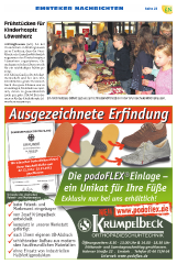 EMSTEKER NACHRICHTEN Seite 23 Frühstücken für Kinderhospiz Löwenherz Höltinghausen (am). An der Grundschule in Höltinghausen ist es Tradition, dass die Viert- klässler ein Erntedankfrühstück zugunsten des Kinderhospizes Löwenherz organisieren. Ge- meinsam mit den Eltern wurde für ein reichhaltiges Büfett ge- sorgt. Die Aktion fand in der Schulge- meinschaft und bei den Vor- schulkindern große Resonanz. Auch den ganz Kleinen war es ein Anliegen, für Kinder zu spen- den, denen es gesundheitlich nicht gut geht. 324,54 Euro ka- men so für das Kinderhospiz Lö- Ein reichhaltiges Büfett gab es zum Erntedankfrühstück in der Grundschule Höltinghausen. wenherz zusammen. Wir wünschen frohe Weihnachten! Unser Geschäft bleibt vom 27.12.2014 - 03.01.2015 geschlossen.