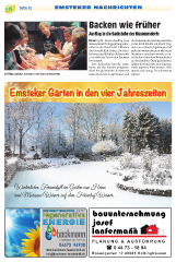 Seite 32 EMSTEKER NACHRICHTEN Backen wie früher Ausflug in die Backstube des Museumsdorfs Halen (pb). Einen Ausflug zum der Innenraum gereinigt werden. Museumsdorf Cloppenburg unter- Jedes Kind bekam ein Stück Teig, nahmen die Kinder der 3.Klassen das nun ordentlich geknetet und der Grundschule Halen. Die Schü- geformt werden konnte. Mit einer lerinnen und Schüler erlebten, wie Nummer versehen wurde es an- es in früherer Zeit in den Backstu- schließend mit dem Brotschieber ben aussah. in den heißen Ofen geschoben. Der Steinofen bereits ange- Später konnte jeder sein eigenes, heizt, als die Kinder ankamen. noch warmes Brot kosten. Alle Aber die glühenden Kohlereste waren sich einig: Es schmeckte Kräftig kneten, backen und dann probieren. mussten noch ausgeräumt und prima! Winterliches Ferienidyll im Garten von Heino und Maranne Werner auf dem Ferienhof Werner. !"#$%&
