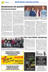 Seite 34 EMSTEKER NACHRICHTEN Heimatverein hat gewählt Alfons Arkenau neuer Vorsitzender Halen(do). Im Mittelpunkt der dies- Verlauf der Veranstaltungen sehr zu- jährigen Tagesordnung der Jahres- frieden. Am Wintergang nahmen hauptversammlung des Heimatver- etwa 60 Mitglieder teil. Auf dem eins Halen standen neben den Rundgang wurden zwei Firmen in Berichten des Vorstandes die Vor- Halen besucht. Den Abschluss bil- standswahlen. In Folge des plötzli- dete ein zünftiges Essen im Dorf- chen Todes des Vorsitzenden Ludger krug. Auch der Umwelttag war ge- Schumacher führte der 2. Vorsit- prägt von einer guten Beteiligung, Der neue Vorstand des Heimatvereins Halen: Vorsitzender Alfons zende des Heimatvereins, Alfons Ar- insbesondere der Grundschule mit Arkenau, Kassenwartin Inge Wolfram, Schriftführerin Annette kenau, in den letzten Monaten den über 100 Kindern. Hinzu kamen 60 Reinke und 2. Vorsitzender Andreas Emke. Foto: Dobelmann Verein. Die Generalversammlung Erwachsene aus den örtlichen Verei- schenkte ihm jetzt das Vertrauen nen. Erfreulich sei der Rückgang der beteiligt.Dargestellt wurde auch der delbüddel“ einen der begehrten Son- und wählte ihn zum neuen Vorsit- vorgefundenen Müllmenge, resü- Sachstand des Projektes Badesee Ha- derpreise gewonnen. zenden. Mit dem Posten des 2. Vor- mierte Alfons Arkenau in seinem Be- len. Hierfür hat sich vor einiger Zeit Künftig kann der Vorstand des sitzenden wurde Andreas Emke be- richt. ein Arbeitskreis gebildet, der gemein- Heimatvereins über Zuschüsse für traut. Inge Wolfram bleibt Die Fahrradtour wurde wegen des sam mit der Gemeinde nach Mög- dörfliche Gemeinschaftsanlagen bis Kassenwartin und Annette Reinke Todes von Ludger Schumacher kurz- lichkeiten sucht, den See der Bevöl- zu 30 Prozent der förderfähigen Auf- wird weiterhin als Schriftführerin tä- fristig abgesagt. Der Tagesausflug kerung beispielsweise durch einen wendungen allein entscheiden. Die tig sein. Mit der Wiederwahl der Kas- führte den Verein an die Nordsee, Rundgang zugänglich zu machen. Höhe des Zuschusses ist dabei auf senprüfer August Vaske und Josef nach Norddeich und Norden. 44 Teil- Das Highlight im abgelaufenen 1000 Euro begrenzt. Ausgelöst hat Blanke erledigte Johannes Kalvelage nehmer besuchten die Seehundauf- Jahr war das gute Abschneiden beim diesen Beschluss ein Antrag der seinen Auftrag als Wahlleiter in kur- zuchtstation und die Ludgerikirche Kreiswettbewerb „Unser Dorf hat Schützenbruderschaft für die Erwei- zer Zeit. mit ihrer imposanten Orgel. Sehr er- Zukunft“. Halen hat in diesem Wett- terung der Außenanlagen beim Ausführlich informierte der Vor- folgreich war auch im letzten Jahr der bewerb den fünften Platz erreicht Schützenhaus. Der Schützenverein stand über die Aktivitäten des Ver- Dorfkalender mit über 500 verkauf- und sich für den Bezirksentscheid im hat dort in den letzten Monaten eine eins im abgelaufenen Vereinsjahr. ten Exemplaren. Am Verkauf waren nächsten Jahr qualifiziert. Darüber Terrasse überdacht und den Grill- Der Vorstand zeigte sich mit dem alle örtlichen Vereine und Gruppen hinaus hat der Familienverein „Tüd- platz erneuert. Nur zwei Zähler Vorsprung Halen (do). Spannend verlief das gend, der Heimatverein und die Dorfpokalschießen in Halen. Die Jägerschaft. Bereits während des teilnehmenden Vereine glänzten Wettkamps zeigte es sich, dass in mit hervorragenden Schießergeb- den einzelnen Vereinen sehr gute nissen. Auch in diesem Jahr ließ Schießergebnisse erzielt wurden. sich die Schützenbruderschaft als Am Ende lagen die Schießergeb- Gastgeber den Sieg nicht neh- nisse der ersten vier Platzierten men, allerdings nur denkbar nahe beieinander. Die Schützen- knapp mit zwei Zählern Vor- bruderschaft verbuchte 362 sprung. Ringe auf ihrem Konto. Der Puller Vertreter der teilnehmenden Vereine und die erfolgreichsten Mit dabei waren der Musikver- Club folgte mit 360 Ringen vor Schützen beim Dorfpokalschießen in Halen. ein, der Puller-Club, die Landju- dem Heimatverein mit 349 Ringe. • Originalitäten aus Emstek Im Schulgarten 21 · 49685 Höltinghausen · Tel. 0 44 73 / 25 41 • Batteriewechsel bei Uhren Schmuck • Herrengeschenke aus Pferdehaar 1. u. 2. Weihnachtstag sowie Silvester geöffnet. An diesen Tagen haben wir für Sie eine spezielle Speisekarte mit vielen neuen Fischgerichten. Reservieren Sie rechtzeitig zu Eine tolle Ich wünsche all’ meinen Kunden eine besinnliche Adventszeit. Geschenkidee zu Weihnachten und Silvester. • Biometrische Passfotos Weihnachten! Am Mühlencenter 1 · 49685 Emstek Telefon 04473/932081 • Digitaler Fotoexpress www.muehle-emstek.de • Hermes Versand-Service Wir öffnen täglich von 12-14.30 Uhr und 18-24 Uhr · Montag Ruhetag Raucherraum vorhanden.