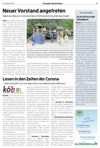 konntenurals„Fernausleihe“ statt- Trotz oder gerade wegen der Lohne sind alle Emsteker herzlich Annahmeschluss: