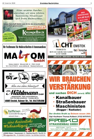 49685 Emstek, Halener Str., Tel. 04473/94990