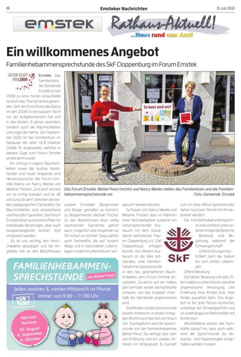 wir so richtig loslegen und für Alt hebammensprechstunde vor. Foto: Gemeinde Emstek