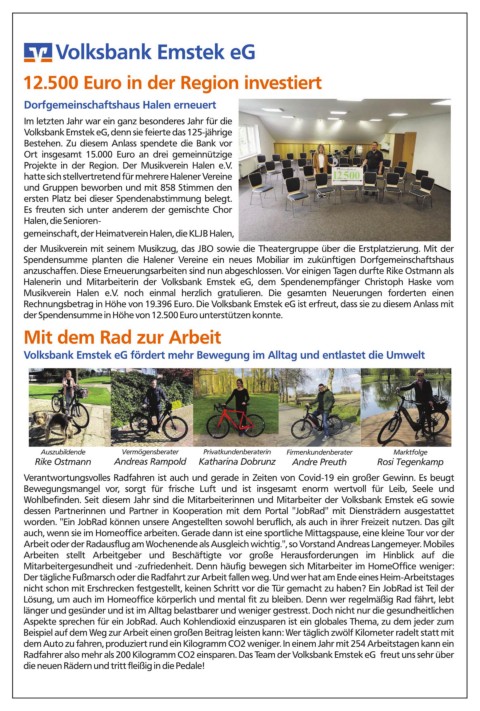 Radfahrer also mehr als 200 Kilogramm CO2 einsparen. Das Team der Volksbank Emstek eG freut uns sehr über