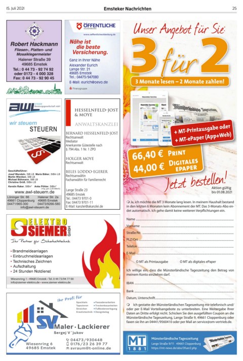 Münsterländische Tageszeitung, Lange Straße 9, 49661 Cloppenburg oder
