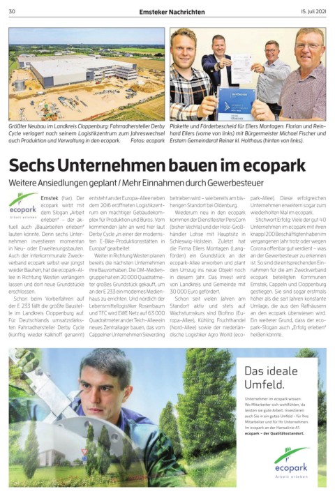 ecopark wirbt mit dem 2016 eröffneten Logistikzent- herigen Standort bei Oldenburg. Unternehmen erweitern sogar zum