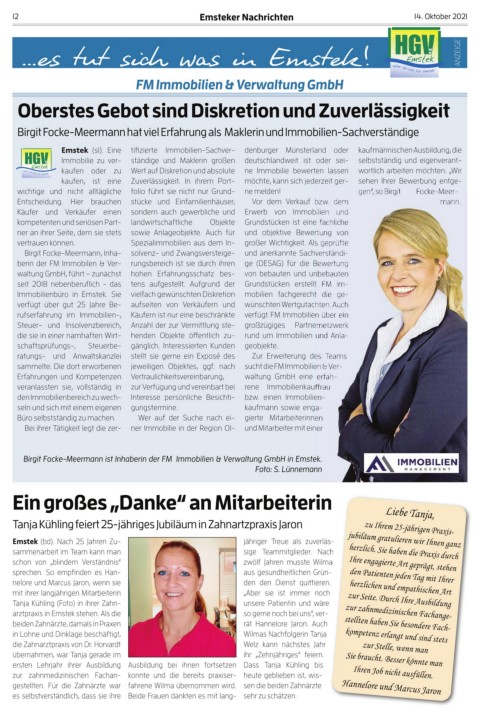 in Lohne und Dinklage beschäftigt, Wilmas Nachfolgerin Tanja kompetenz erlangt und sind stets