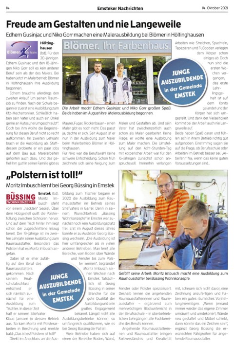 beiten in Berührung und merkte bei Georg Büssing der Fall ist. Angehende Raumausstatterin- ergänzt Georg Büssing die er-