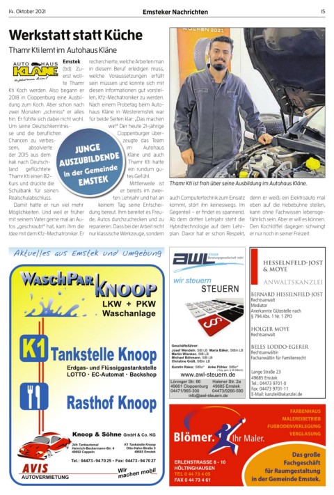 Kurs und drückte die Mittlerweile ist Thamr Kti ist froh über seine Ausbildung im Autohaus Kläne.