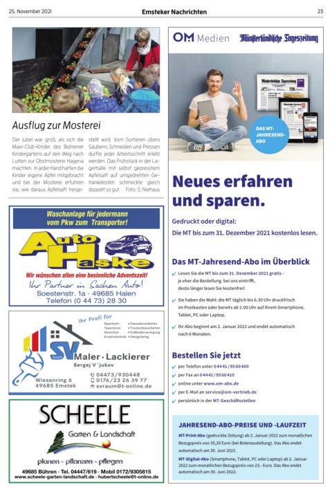 Wir wünschen allen eine besinnliche Adventszeit! Lesen Sie die MT bis zum 31.Dezember2021gratis –