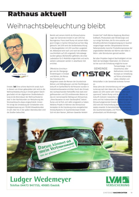 Weihnachtsbeleuchtung in Emstek geben! Gleich- des nachwachsenden Rohstoffes Holz statt ener- zeptes von 2014 waren sehr intensiv. „Aber auch