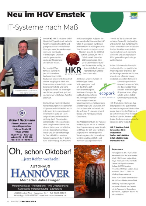 Oh, schon Oktober! Herausgeber i.S.d.P.: HGV Emstek