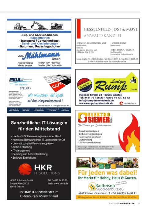 49661 Cloppenburg 49685 Emstek 27793 Wildeshausen 17126 Jarmen 17506 Gützkow