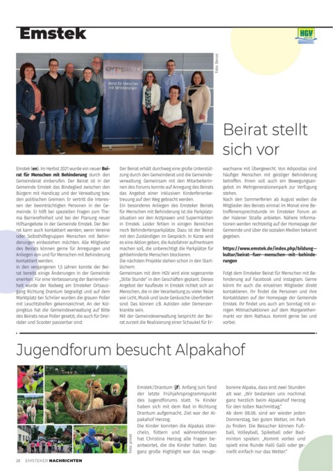 rat bereits einige Änderungen in der Gemeinde Gemeinsam mit dem HGV wird eine sogenannte Folgt dem Emsteker Beirat für Menschen mit Be-
