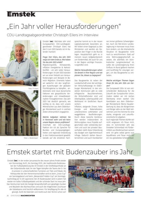 Emstek (bm). In der ersten Januarwoche des neuen Jahres findet wieder