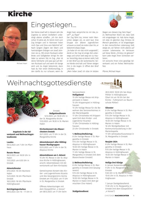 14.12.2023: 18 Uhr Pfarrheim und des Gesangvereins Cäcilia Aloysius in Höltinghausen 15:45 Uhr in St. Aloysius in Höl-