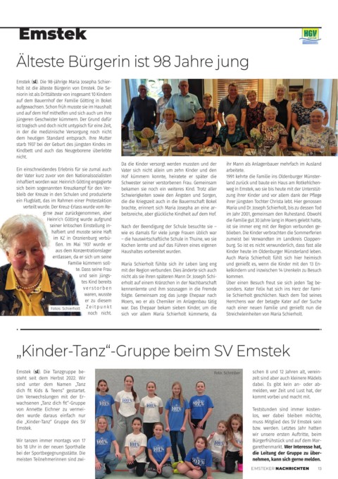 Emstek (sl). Die 98-jährige Maria Josepha Schier-
