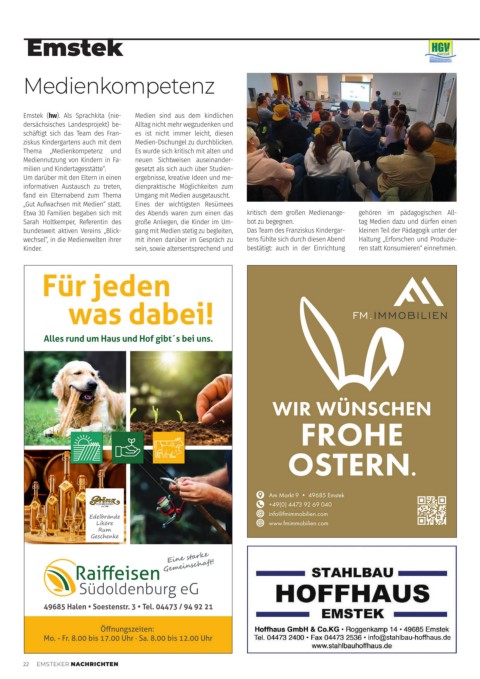 Emstek (hw). Als Sprachkita (nie- Medien sind aus dem kindlichen