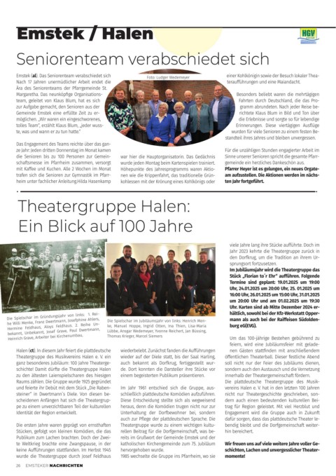 he Willi Menke, Franz Dwertmann, Josefphine Ahlers, Die Spielschar im Jubiläumsjahr von links: Henrich Men- mann als auch bei der Raiffeisen Südolden-