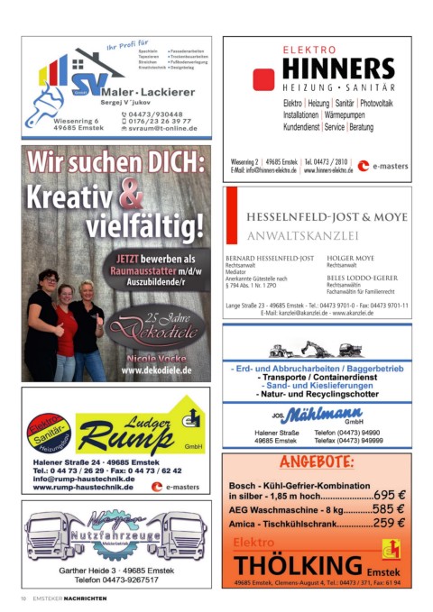 E L E K T R O Elektro Heizung Sanitär Photovoltaik Installationen Wärmepumpen Kundendienst Service Beratung 10 EMSTEKER NACHRICHTEN