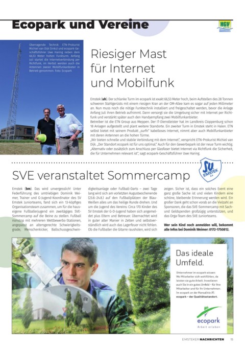 Dijk. „Der Standort ecopark ist für uns optimal.“ Auch für den Gewerbepark ist der neue Turm wichtig.