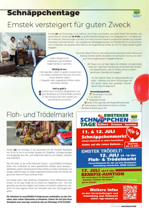 ler Fundstücke, Überraschungen und Herz. Zum Aufruf kommen liebevoll ausgesuchte Spenden aus Emsteker