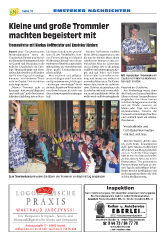 Seite 10 EMSTEKER NACHRICHTEN Kleine und große Trommler machten begeistert mit Trommelreise mit Markus Hoffmeister und Emsteker Kindern Emstek (ms) – Zur gemeinsamen künftigen Schulkinder gemein- Markus Hoffmeister erzählte Brückenjahraktion luden die sam mit den Erstklässlern in ei- kleine Weisheitsgeschichten, wie Grundschule Emstek und die bei- nen Trommeldialog mit Markus die von der kleinen Maus, deren den Emsteker Kindergärten St. Ma- Hoffmeister. Schnell war ein ge- sehnlichster Wunsch es war, ein- ria Goretti und Franziskus in die meinsamer Rhythmus gefunden. mal auf der Nase des Löwen tan- Aula der Grundschule ein. Theo- Alle spürten, wie wunderbar sich zen zu dürfen. Wie es ihr gelang, loge, Theaterpädagoge und Trom- diese große Trommelgemein- erzählte er mit seinem ganzen Kör- melerzähler Markus Hoffmeister schaft anfühlt. per, mal mit leiser und lauter war für einen Tag nach Emstek ge- Mut machend und selbstbe- Stimme oder Trommelunterma- Mit hunderten Trommeln im kommen - mit hunderten Trom- wusst erklangen viele Trommeln lung und immer mit vielen hu- Gepäck kam Markus Hoffmeis- meln im Gepäck. Und die blieben und Sprechverse wie „Ich bin gut morvollen Momenten. Die Kinder ter nach Emstek. nicht lange stumm. – du bist gut – wir sind gut“ durch waren dabei mehr als aufmerk- „Meiner Trommel geht es die Aula. Es gab kein Kind und kei- same Zuhörer, sie gestalteten die Botschaft der Geschichte. heute gut – hört, wie sie klingt und nen Erwachsenen, der sich von Geschichte mit und verinnerlich- Am Nachmittag waren dann macht alle mit“, nach dieser musi- dieser Stimmung nicht einfangen ten so auf musikalische Weise die alle Kinder noch einmal mit ihren kalischen Einladung traten die zu- ließ. wohltuende und lebensbejahende Eltern zu einem Trommelkonzert eingeladen. Die Eltern freuten sich über die begeisterten Kinder, und die Kinder staunten, als Mama oder Papa mit einem schmunzelnden Gesicht die Trommeln zum Klingen brachten und sichtlich Spaß am Mitma- chen hatten. Vorschulkinder und Erstklässler trommelten mal laut, mal leise Mit den Worten „Schön, dass ich euch heute kennenlernen darf“, hatte Markus Hoffmeister alle Zuhörer am Morgen begrüßt und am Ende des Aktionstages hieß es von den Mitmachenden: „Schön, dass du heute bei uns in Emstek warst.“ Der gemeinsame Trommelklang verband an die- sem Tag die zukünftigen Schul- kinder mit den Erstklässlern und noch singend machten sich viele Zum Trommelkonzert waren die Eltern der Trommler am Nachmittag eingeladen. auf den Nachhauseweg. Inspektion Nach Herstellervorgabe. Wir überprüfen exakt nach Wartungsplan. Die Herstellergarantie bleibt in vollem Umfang erhalten. Angebot: Kleine Inspektion 36,- € / Große Inspektion 69,- € WAL TRA U D JABCZYNSKI GmbH Ihre Terapeutin bei Sprach-, Sprech- und Stimmauffälligkeiten für Kinder und Erwachsene Otto-Hahn-Straße 10 · 49685 Westeremstek ( 0 44 73 / 94 77 70 Antoniusstraße 17 · 49685 Emstek www.eberlei.com Telefon 0 44 73 / 94 33 180 · Fax 0 44 73 / 94 35 928 ...wir machen das.