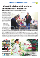 EMSTEKER NACHRICHTEN Seite 35 „Wenn Alfred einschläft, wacht er als Prominenter wieder auf“ Noch zweimal ist „Brägenklöterig un mehr“ in Höltinghausen zu sehen Höltinghausen (sp) – Wer es bis- lang versäumt hat, sich das platt- deutsche Theaterstück „Brägenklö- terig un mehr“ in Höltinghausen anzusehen, hat noch zweimal Ge- legenheit dazu: am 22. und 29. März. An den beiden Samstagen öffnet sich jeweils um 19.30 Uhr der Vorhang im Saal der Gaststätte Lüken. Die Besucher können dort erleben, was mit einem Menschen passieren kann, der nach einem Un- fall an einer seltenen Form von Ge- dächtnisschwund leidet. Seltene Form von Gedächtnisschwund sorgt für Verwirrungen Alfred Heinze, dargestellt von Daniel Schnieders, liegt nach ei- nem Schlag an den Kopf in einer Klinik. Immer wenn er einschläft, erwacht er anschließend als eine fremde, in der Regel prominente Hier herrscht Ordnung: Oberschwester Hildegard wird von Patienten und Klinikpersonal auch Person. Zum Leidwesen seiner als „Feldwebel der Klinik“ bezeichnet. Foto: Verlobten Ulla, gespielt von Elke Behrens, sowie der Mitpatienten in Person von Oberschwester Hil- Vera (Bernadette Thole), der „gu- nige Patienten, eine Kranken- Ignatz Bessenbinder, verkörpert degard (Bettina Lager), die auch ten Seele des Hauses“, hält Alfred schwester und schließlich Kom- von Olaf Schulte, und Kurt Klop- als Feldwebel der Klinik bezeich- ganz schön auf Trab. Besonders missar Kojambel (Josef Schönig), per (Christoph Kock) schläft er net wird, der immer leicht über- interessant wird es, als zusätzlich den Täter dingfest zu machen. sehr häufig ein und erinnert sich forderten Chefärztin Dr. Mecht- ein Dieb im Krankenhaus sein Dieses Unterfangen ist allerdings an nichts aus seinem wirklichen hild Wusler, gespielt von Michae- Unwesen treibt. Mit Hilfe des ah- nicht so einfach, wie es angedacht Leben. Auch das Klinikpersonal la Meyer, und Krankenschwester nungslosen Alfreds versuchen ei- war. Die Nr. 1 bei Kids und Teens im Oldenburger Münsterland! Traumgärten Gartenplanung Gestaltung & Pflege Kids + Teens CLOPPENBURG · VECHTA · EMSTEK Gärtner mit Herz Toni Haske Das Neueste aus der Region! Zum Gogericht 3 49685 Emstek Lange Straße 9/11 49661 Cloppenburg Tel. 04473-9727-0 Tel. (04471) 178-0 www.gaertnermitherz.de