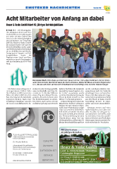 EMSTEKER NACHRICHTEN Seite 39 -Anzeige- Acht Mitarbeiter von Anfang an dabei Heuer & Vaske GmbH feiert 10-jähriges Betriebsjubiläum Emstek (dv) – Die Firmengrün- der Hermann Heuer und Otto Vaske, beide aus Emstek, wagten vor mehr als zehn Jahren den Schritt in die Selbstständigkeit und gründeten im Dezember 2003 die Heuer & Vaske GmbH. Sie spezialisierten sich auf den Bereich Metallbau sowie Land- und Fördertechnik. Dies beinhal- tet u.a. Stahlbauten und der An- fertigung von Treppen- und Bal- kongeländern sowie die Reparatur von Land- und Bau- maschinen (auch Gabelstapler) inkl. der Abnahme der UVV- Prü- fung. Die beiden Chefs, Otto Vaske und Hermann Heuer (vorne), mit Ludger Hüttmann, Simon Schön- wald, René Knobel, Mechthild Vaske, Norbert Johannes, Walter Brinkhus und Anne Tegenkamp (v.l.), die alle seit zehn Jahren beim Unternehmen beschäftigt sind. Es fehlt Helmut Seeger. Nachdem man anfangs in ei- stehend aus der Fertigungshalle, änderte. Nachdem die Gemeinde wurde, würdigten Inhaber Her- ner angemieteten Halle in Halen einer Lackierhalle und dem Bü- Emstek das Gewerbegebiet „Ha- mann Heuer und Otto Vaske die die Arbeiten ausführte, konnte rotrakt am 12. Oktober 2008, mit ler Höhe“ ausweitete, wurde jahrelange Treue und sprachen Mitte des Jahres 2007 mit dem einem Tag der offenen Tür ein- auch die Adressbezeichnung der ihnen und allen weiteren Ange- Bau einer eigenen Betriebshalle geweiht. Seitdem befindet sich Heuer & Vaske GmbH in „Zur stellten ihren persönlichen Dank begonnen werden. Nach einer der Betriebsstandort an dersel- Wiese 4“ in Emstek geändert. aus. Die Heuer & Vaske GmbH einjährigen Bauphase wurden ben Stelle, auch wenn sich die All diese Ereignisse haben die beschäftigt derzeit 14 Ange- die neuen Geschäftsräume, be- Zufahrtsregelung zum Betrieb Mitarbeiter Norbert Johannes, stellte und einen Auszubilden- Helmut Seeger, Simon Schön- den. wald, Anne Tegenkamp, Ludger Hermann Heuer und Otto Hüttmann, René Knobel, Mecht- Vaske bedanken sich zudem bei hild Vaske und Walter Brinkhus allen Kunden für die gute Zu- hautnah miterlebt, denn sie sind sammenarbeit und hoffen, dass seit Firmeneröffnung bei dem sie sich weiter von den qualifi- Unternehmen tätig. Auf der zierten Arbeiten und Produkten Weihnachtsfeier, auf dem das 10- überzeugen lassen und dem Be- jährige Betriebsjubiläum gefeiert trieb weiterhin die Treu halen. Wir feiern unser 10-jähriges Bestehen. Zertifizierte Implantologie und Parodontologie Ästhetische Zahnheilkunde QUALITÄT Dr. Nicolai Böhme Zahnarztpraxis für zertifizierte ÄSTHETIK Implantologie und Parodontologie Ästhetische Zahnheilkunde ZUFRIEDENHEIT An der Brake 2 · 49685 Emstek Gabelstapler Reparatur Tel. 04473/943145-46 SERVICE Mobil 0171/1783679 BERATUNG www.zahnaerzte-emstek.de