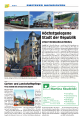 Seite 8 EMSTEKER NACHRICHTEN Fotos: © Maxim-Reisen Höchstgelegene Stadt der Republik Luftkurort Oberwiesenthal am Fichtelberg Emstek ( jw) – Eine tolle Reise, ge- senthal und der Umgebung zur sponsert von Maxim-Reisen Ems- freien Verfügung. Wer will, der tek, gibt es bei der HGV-Verlosung kann mit einem gut ausgebildeten, zu gewinnen. Es geht für vier Tage ortskundigen Reiseleiter einige in- nach Oberwiesenthal am Fichtel- teressante Ausflüge unternehmen. berg. Oberwiesenthal ist nicht nur Eine Tour führt ins wunderbare die höchstgelegene Stadt Vogtland, wo u.a. Klingenthal und Deutschlands (914 m ü.NN), son- die Vogtlandarena mit der Groß- dern auch die Stadt mit dem schanze besucht werden. Der im- höchsten Berg Sachsens (1214 m). posante Panoramablick von der Als staatlich anerkannter Luftkur- Aussichtsplattform und der Kapsel ort gibt es viele Reize zu entde- des Anlaufturmes begeistert die cken und genießen. Naturschön- Besucher immer wieder. Ein ande- heiten, lauschige Plätze, saf- rer Ausflug führt u.a. nach Anna- tiggrüne Bergwiesen und viele in- berg-Buchholz mit seinen breiten teressante Sehenswürdigkeiten Geschäftsstraßen und schmale, gewähren immer neue Eindrücke. oftmals steilen malerischen Gas- Nach der Anreise im komforta- sen. Ein Muss ist der Besuch der blen Fernreisebus gibt es die ers- St.-Anne-Kirche, eine imposante ten Informationen über die Re- Hallenkirche an der Schwelle zwi- gion gibt es am Anreisetag im schen Spätgotik und Renaissance Hotel. Die nächsten zwei Tage ste- ist. Am vierten Tag geht es dann Die St.-Annen-Kirche in Annaberg ist eine Reise wert. hen zur Erkundung von Oberwie- wieder zurück in die Heimat. Anzeige Garten- und Landschaftspflege Firma Skudelski mit umfangreichem Angebot Garten- und Landschaftspflege Martina Skudelski Westeremstek. L a n d - (bd) –Mit einem schaftspfle- Vertikutierer, ei- ge, Garten- nem Aufsitzra- gestaltung • Rasenpflege senmäher und sowie Mini- • Rasenerneuerung der Faszination baggerar- Grüne Straße 2 • Gartenpflege für Landmaschi- beiten. 49685 Westeremstek nentechnik fing Auch der Telefon: 0 44 73 / 61 28 • Minibagger 1994 alles an. Fuhrpark Mobiltelefon: 01 71 / 4 02 51 61 • Winterdienst Heute steht die (Foto) wur- Fax: 0 44 73 / 92 95 84 • Containerdienst Firma Skudelski de vergrö- in Westerems- ßert. Es ka- tek mit einem umfangreichen Fuhr- men einige Schlepper, ein Schredder lich weiterentwickelt. Heute bietet Der Familienbetrieb beschäftigt park und Gartengeräten da. und ein Steiger hinzu. „Für jeden die Firma Skudelski ein großes Spek- sind heute die Söhnen Michael, er Zum Kerngeschäft gehören die Einsatz haben wir das richtige Ge- trum an Dienstleistungen an. Dazu ist Landmaschinenmechaniker- Rasenpflege und -erneuerung. Im rät“, betont Günter Skudelski. In gehören unter anderem der Win- meister, und Stefan, gelernter Land- Laufe der Zeit erweiterte sich das den zurückliegenden 20 Jahren hat terdienst und landwirtschaftliche schaftsgärtner, sowie eine Gärtnerin Angebot der Firma mit Garten- und sich das Unternehmen kontinuier- Lohnarbeiten. und fünf Gartenbauhelfer.