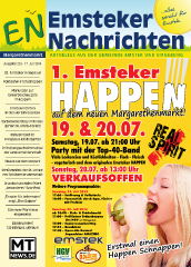 ...alles spricht für Emstek AKTUELLES UNG AKTUELLES Margarethenmarkt Margarethenmarkt AKTUELLES AUS DER GEMEINDE EMSTEK UND UMGEBUNG US DER GEMEINDE EMSTEK UND UMGEA US DER GEMEINDE EMSTEK UND UMGE US DER GEMEINDE EMSTEK UND UMGE BUNG Margarethenmarkt Ausgabe 223 · 17. Juli 2014 22. Emsteker Kirmeslauf Politischer Frühschoppen Planungen zur Gewerbeschau 2015 im Ecopark Emsteker Gärten in den vier Jahreszeiten Gartenaktionstag im Kinder- garten St.-Maria-Goretti Naturprojekt im Franziskus-Kindergarten 21 Rettungsschwimmer bei der Landesmeisterschaft Neues aus dem ecopark Schützenfest der St.-Johan- nes-Schützenbruderschaft Grundschule Halen feiert „besonderes“ Sportfest „Theater für Jedermann“ zeigt „Don Quijote“ Bührener Pfarrheim eingeweiht Büssing feiert 125-jähriges Jubiläum