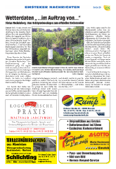 EMSTEKER NACHRICHTEN Seite 29 Wetterdaten „ ...im Auftrag von…“ Stefan Meckelnborg: Vom Hobbymeteorologen zum offiziellen Wettermelder Emstek (bd). Gerade einmal zwei Eine Woche später stand in der Wochen war es her, seit Stefan Me - Nikolausstraße neben dem un- ckelnborg in den Emsteker Nach- scheinbaren privat angelegten Nie- richten über sein ungewöhnliches derschlagsmesser ein ebenso un- Hobby, das Sammeln von Wetter- scheinbarer, offizieller Nieder- daten in Emstek, berichtete, als er schlagsmesser des Deutschen Wet- einen überraschenden Anruf be- terdienstes. Der Standort ist perfekt kam. „Uns ist eine Zeitschrift zuge- – allein die Sträucher im Anschluss steckt worden (…) und wir suchen an das Grundstück müssen im Auge händeringend jemanden, bei dem behalten werden. „Die müssen klein eine Wetterstation aufgestellt wer- bleiben“, wurde Stefan Me- den kann“, zitiert Stefan Meckeln- ckelnborg ermahnt. Das liege nicht borg seinen Anrufer aus Leer. alleine in seiner Hand, schließlich sei das eine Fläche der Gemeinde, Einem Beamten des Deutschen musste er eingestehen. Doch ein Wetterdienstes wurden die Ausgabe kurzes Gespräch mit Bürgermeister der „Emsteker Nachrichten“ zum Michael Fischer versicherte, dass es Forsythiensonntag auf den daran nicht liegen soll! Nun heißt es Schreibtisch gelegt. Der zögerte täglich pünktlich um 7.50 Uhr, den nicht anzurufen, suchte er doch ei- Gleich zwei Niederschlagsmesser (links alt, rechts neu) stehen Niederschlag zu messen (im Winter nen Nachfolger für den bisherigen im Garten von Stefan Meckelnborg. Der Hobby-Meteorologe 6.50 Uhr). Vertragspartner aus Wildeshausen, ist jetzt auch offizieller Wettermelder für den Deutschen Wet- Damit ist Emstek die einzige Ge- der die Aufgabe des Meldens von terdienst. Foto: Deeken meinde in Südoldenburg, in der so- Wetterdaten nicht mehr erfüllen wohl eine Messstation des Deut- konnte. Die Suche im Landkreis rologe hat nichts dagegen, nun auch nach Emstek, machte ein paar Fo- schen Wetterdienstes als auch eine nach einem geeigneten Nachfolger amtlich zu melden. Und auch die tos, vermaß den Standort, schickte Station des privaten Wetterdienstes blieb bis dahin erfolglos. geforderte Vertretung war schnell die Informationen an die Zentrale Meteomedia (ehemals Kachel- gefunden. Nachbar Christian Möl- in Offenbach/Main – und bekam mann) mit Standort im Ecopark, Der Bericht über Stefan Me - ler springt ein, wenn Stefan Me - von dort das „O.K.“. Wetterdaten meldet. ckelnborg ließ den Meteorologen ckelnborg einmal nicht messen aus Leer hoffen, nun den passenden kann. Ein paar Tage später kam der Partner gefunden zu haben. So ist es „Wetterprofi“ aus Leer, zuständig auch. Der Emsteker Hobby-Meteo- für den Nordwestdeutschen Raum, WAL TRA U D JABCZYNSKI • Originalitäten aus Emstek Ihre Terapeutin bei Sprach-, Sprech- und Stimmauffälligkeiten für Kinder und Erwachsene • Batteriewechsel bei Uhren Antoniusstraße 17 · 49685 Emstek • Exclusives Kartensortiment Telefon 0 44 73 / 94 33 180 · Fax 0 44 73 / 94 35 928 T TERRASSENÜBERDACHUNGERRASSENÜBERDACHUNG aus Aluminium Wintergartenbeschattung Insektenschutz · Markisen • Pass- und Bewerbungsfotos SONNENSCHUTZ-SYSTEME Vereinbaren Sie einen Termin Schlichting unter Tel. 0 44 47 / 82 14 • Bild vom Bild Fachgerechte und • Hermes Versand-Service Dorfstr. 1 · Bühren · www.markisen-schlichting.de kompetente Beratung.