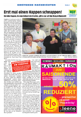 EMSTEKER NACHRICHTEN Seite 3 Erst mal einen Happen schnappen! Emsteker Happen, die neue kulinarische Kreation, gibt es nur auf dem Margarethenmarkt Emstek (cs). Auf einem in vielen Be- reichen umgekrempelten Margare- thenmarkt werden die Besucher der Kirmes am 19. und 20. Juli in Emstek treffen. Nicht nur, dass das Fest auf zwei Tage komprimiert wurde, auch das Grundkonzept eines Jahrmarktes wurde angepackt. Auf große Fahrge- schäfte wird verzichtet, stattdessen steht die Begegnung von Menschen im Fokus. Und wie könnte ein solches Treffen besser begleitet werden, als mit Leckereien und erfrischenden Getränken? Das haben sich auch die Macher vom Handels- und Gewerbe- verein sowie der Kirmesausschuss und die beiden Marktmeister der Ge- meindeverwaltung gedacht. Heraus- gekommen ist ein Programm mit vielen Köstlichkeiten, wobei Fleisch- und Fischliebhaber ebenso auf ihre Kosten kommen werden, wie die An- hänger der vegetarischen Küche. Ein Weinstand ist ebenfalls auf dem „kleinen Marktplatz“ geplant. Abge- rundet wird der erste Kirmestag mit Haben den „Happen“ getestet: Maria Moors und Konrad Moors von der Fleischerei Moors, Happen- Live-Musik der Top-40 Band „Real Erfinder Hartmut Rieger und Marktmeister Christian Scheper (v.l.). Foto: Thomas Vorwerk Spirit“. „Ein solches Fest ohne eigene Spe- Dort stieß die zialität kann MITTAGSBÜFFET Idee, frische grobe SOMMER - SCHLUSS - VERKAUF nichts wer- Bratwurst im den“, sagte AM SONNTAG Brötchen mit und Zwiebeln zu R Ä schon vor Mo- Im Anschluss an den politischen Kräuterbutter UMAK T I O N naten HGV- Frühschoppen wird ein vielfälti- Mitglied Hart- ges Mittagsbüffet durch das servieren, auf of- mut Rieger und ROADHOUSE angeboten. fene Ohren und ZUM fand zahlreiche so werden die kleinen Würstchen von Unterstützer für seinen „Emsteker Fleischermeister Konrad Moors am Happen“. Also machte sich der pas- Markttag produziert. Für die Bröt- SAISONENDE sionierte Hobby-Koch Gedanken, chen hat Rieger mit der Bäckerei wie dieser „Snack mit Alleinstel- Knappe ebenfalls am Ort einen AKTUELLE SOMMER-MARKENARTIKEL DER DAMEN UND lungsmerkmal“ aussehen könnte. Handwerker gefunden, der die pas- HERRENMODE, SOWIE YOUNG FASHION SIND ... Schnell fand er die Lösung. „Würst- senden Backwaren herstellt. chen, Brötchen und Zwiebeln mag Trotz einiger Neuerungen, wird es doch eigentlich jeder“, sagte er, als der aber auch bekannte Elemente auf „Happen“ probeweise „gebaut“ wur- dem Margarethenmarkt geben. Dazu ...mindestens50% de. Den „Emsteker Happen“ soll es gehört der Kirmeslauf am Samstag, ausschließlich auf dem Margare- der sich auf die Dis-tanzen über fünf thenmarkt und somit nur einmal im und zehn Kilometer beschränkt (s. Jahr geben. So bleibt er etwas Beson- nächste Seite). Zur Eröffnung um 18 deres, meinen die Verantwortlichen. Uhr werden 100 Liter Freibier ausge- REDUZIERT Das Rezept für die Wurst stammt schenkt. www.modehaus-kleene.de ebenfalls von ihm, wenngleich die Auch der politische Frühschoppen Zutaten nicht neu sind. „So wird auf am Sonntag um 11 Uhr ist schon Tra- R ... gekennzeichnet den Bauernhöfen seit Jahrhunderten dition (s. Seite 5). Am Sonntag gibt es e d u z i e r t eduziert mit diesem ermittelt. „Der dritte Durchgang hat vergangenen Jahr wird der Jugend- % Reduziert “Prozent-Smiley” Wurst gemacht“, ist er sich sicher, einen Floh- und Trödelmarkt, den dass seine Kreation vielen schmecken Seniorennachmittag im Festzelt ab R wird. Kleinigkeiten sind es noch, die 15 Uhr und um 17.15 Uhr eine Vor- t r in diesen Tagen abgestimmt werden, führung der Bauchtanzgruppe aus e i denn das Verhältnis der Zutaten hat dem Lernkreis Emstek. Nach dem z u Hartmut Rieger bereits bei Testläufen großen Erfolg seines Konzertes im gepasst und mit dem Rezept haben chor „Amazing“ ab 17.30 Uhr ein d e R t r e Reduziert R d kleene wir uns dann an die Schlachterei Open-Air-Konzert zum Ausklang i z u e das modehaus in emstek Moors gewandt.“ des Margarethenmarktes geben.