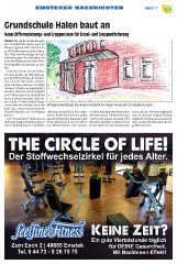 EMSTEKER NACHRICHTEN Seite 17 Grundschule Halen baut an Neuer Differenzierungs- und Gruppenraum für Einzel- und Gruppenförderung Halen (pb). An der Spielplatzseite der Grundschule Halen wird im Moment gebaut. Hier entsteht ein gut 40 Quadrameter großer Anbau. Der Platz wird benötigt, um den Anforderungen der Inklusion, die in an den Niedersächsischen Schu- len eingeführt ist, gerecht zu wer- den. Inklusion in der Schule bedeu- tet, dass Kinder mit Behinderun- gen gleichberechtigt am Schulle- ben und am Unterricht teilneh- men können müssen. Deshalb müssen Schulen so ausgestattet werden, dass dies auch möglich ist. Darüber hinaus hat sich in den letzten Jahren gezeigt, dass im- mer mehr Kinder zusätzlich ge- fördert werden müssen. Auch das Dringend benötigter Schulraum entsteht im neuen Anbau der Grundschule Halen. geht nur, wenn entsprechende Räumlichkeiten zur Verfügung rialraum und auf dem Flur einge- ven Beschulung nicht entsprechen. men und vom Flur aus zugänglich stehen. richtet. Es versteht sich von selber, Mit dem neuen Differenzierungs- sein. So können sowohl Klassen Die Grundschule Halen hat in dass die Rahmenbedingungen dort und Gruppenraum wird sich diese aufgeteilt werden, als auch Einzel- den letzten Jahren Förderecken in nicht optimal sind und vor allem Situation deutlich verbessern: Der oder Gruppenförderungen durch- einer Umkleidekabine, im Mate- den Erfordernissen einer inklusi- Raum wird von zwei Klassenräu- geführt werden.