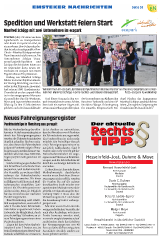 EMSTEKER NACHRICHTEN Seite 33 Spedition und Werkstatt feiern Start Manfred Schöpp mit zwei Unternehmen im ecopark Drantum (uh). Ob Güter aus dem Agrarbereich zu transportieren oder Autos zu reparieren sind, ob ein moderner Lkw-Fuhrpark gefor- dert ist oder ein zeitgemäßer Pkw- Check – Manfred Schöpp und sein Team bieten sich als Partner an. Die Unternehmen Schöpp Trans- porte/Logistik/Spedition und Schöpp-die-Schrauber haben am 28. September ihren neuen Be- triebssitz im ecopark mit einem Tag der offenen Tür präsentiert. Bislang war Manfred Schöpp Mieter in einem Objekt am Emste- ker Herzog-Erich-Weg, nun hat er selbst in den Firmensitz investiert. Auf seinem 5000-Quadratmeter- Willkommen im ecopark: Emsteks Bürgermeister Michael Fischer (vorne links) begrüßt den Unter- Grundstück an der ecopark-Allee nehmer Manfred Schöpp (vorne rechts) und dessen Belegschaft. Foto: ecopark (Uwe Haring) ist in den vergangenen Monaten ein stattlicher Bau für Werkstatt, Und dieser Umzug in den eco- der Unternehmer aus Ahlhorn den chael Fischer, das Engagement Büros und Lager errichtet worden. park ist zunächst ein erster Schritt, Bau einer Tankstelle und einer öf- Manfred Schöpps ausdrücklich zu Wichtig: Zu den 15 Mitarbeitern dem bald ein zweiter folgen soll. fentlichen Waage. Gründe genug loben: „Sie tragen zu Steigerung des gehören auch drei Auszubildende. Denn unmittelbar gegenüber plant für Emsteks Bürgermeister Mi- Attraktivität des Standorts bei.“ Neues Fahreignungsregister Punkteeinträge in Flensburg neu geregelt Mit der Verabschiedung des altbe- Er ist darüber zu unterrichten, kannten Verkehrszentralregisters dass bei Erreichen von 8 Punkten durch das Fahreignungsregister die Fahrerlaubnis entzogen wird. werden die Fahrerlaubnisinhaber Ein Punkteabbau ist nicht mehr deutlich schneller fürchten müs- möglich. Ein freiwilliger Besuch sen, dass ihnen die Fahrerlaubnis eines Fahreignungsseminars ist aufgrund Punkteeinträge in Flens- natürlich willkommen. Sind 8 burg entzogen werden könnte. Tat- Punkte oder mehr erreicht gilt der sächlich wird mit etwa 5.000 Ent- Fahrerlaubnisinhaber als unge- zügen pro Jahr mehr gerechnet als eignet zum Führen von Kraftfahr- bisher. zeugen, und die Fahrerlaubnis ist Solche Eintragungen haben für durch die zuständige Behörde zu den Betroffenen erhebliche Kon- entziehen. Bernard Hesselnfeld-Jost sequenzen, weil verkehrsrechtli- Zu beachten ist, dass jede dieser che Verstöße zu weiteren Maß- Maßnahmestufe durchlaufen Rechtsanwalt Mediator nahmen der Fahrerlaubnisbe- werden muss. Sind diese Voraus- Emstek hörde führen werden. Für diese setzungen nicht erfüllt, werden auffälligen Kraftfahrer sind Maß- die Punkte bis auf die zuletzt Doris C. Duhme nahmestufen eingeführt. Zwi- durchlaufene Stufe mit der ent- Rechtsanwältin schen 1 bis 3 Punkten passiert zu- sprechenden Maßnahme zurück- Fachanwältin für Familienrecht nächst nichts. Man ist lediglich gedreht. Der Anordnung der Ent- Fachanwältin für Verkehrsrecht Emstek für das Erreichen der nächsten ziehung Stufe 3 muss also die Punkte vorgemerkt. Verwarnungsstufe 2 und dieser Beles U. Loddo-Egerer Eine Ermahnung wird schrift- die Ermahnung Stufe 1 vorherge- Rechtsanwältin lich ausgesprochen, wenn sich 4 gangen sein. Fachanwältin für Familienrecht oder 5 Punkte beim Fahrerlaub- Mit dem neuen Recht sind die Emstek nisinhaber angesammelt haben. weniger erheblichen Verstöße, die Holger Moye Es besteht die Möglichkeit, durch nach alter Rechtslage mit einem Rechtsanwalt eine freiwillige Teilnahme an ei- Punkt bewertet worden sind, Cappeln nem Fahreignungsseminar einen nunmehr vergleichsweise scharf Punkt abzubauen. sanktioniert. Auch das Erhöhen Liegen bei dem Fahrerlaubnis- der Eintragungsgrenze von 40 inhaber 6 oder 7 Punkte vor, ist Euro auf jetzt 60 Euro zeigt, dass beim Erreichen eines dieser Punk- Autofahrer deutlich stärker zur testände schriftlich zu verwarnen. Kasse gebeten werden.