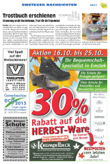 EMSTEKER NACHRICHTEN Seite 9 Trostbuch erschienen Erinnerung an die Verstorbenen, Trost für die Trauernden Emstek (gk). Seit einiger Zeit be- Weise mit Trauer um, jedoch kön- persönliches Geschenk mit eige- schäftigt sich eine kleine Gruppe nen wir miteinander ins Gespräch nen Erfahrungen, Wünschen, Sor- aus der St.- Margaretha-Gemeinde kommen, einander begleiten und gen, Hoffnungen und auch tröst- damit, einen Trauerbesuchsdienst ein kleines Stück des Weges mitge- lichen Gedanken, die von vielen einzurichten. Mit der Trauer leben hen. Personen aufgeschrieben wurden. zu lernen, ist eine große Herausfor- Das Trostbuch ist ein besonde- Ein Buch von Menschen für Men- derung, mit der sich jeder früher res Geschenk für die Angehörigen schen aus unserer Gemeinde. Wie oder später auseinandersetzen und ermöglicht zugleich einen im Vorwort so treffend formu- muss. Natürlich geht jeder Mensch Einstieg in den Dialog mit den liert, „möchte die Gemeinde ein storbenen und ein Ort des Trostes auf seine individuelle Art und Trauernden. Das Buch ist ein sehr Ort der Erinnerungen an die Ver- für die Trauernden sein“. Viel Spaß auf der Herbstkirmes! Hotel - Restaurant Schute Lange Str. 15, 49685 Emstek Tel. 04473/1006 Weihnachtsfeiern Reservierungen nehmen wir gerne entgegen. 2. Weihnachtstag mittags Festmenü auf Anmeldung! Grünkohlessen 10.- € Grünkohlessen € 50 inkl. Getränke 33. mit Bosseltour + 9.- € !!!Partyservice!!!