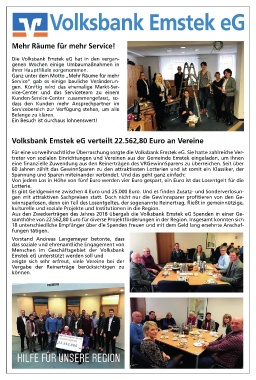Aus den Zweckerträgen des Jahres 2018 übergab die Volksbank Emstek eG Spenden in einer Ge-