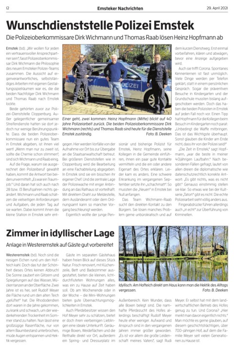 te. Dass die beiden Polizeiober- Emstek zuständig. Foto: B. Deeken Das ist das Wichtigste überhaupt.