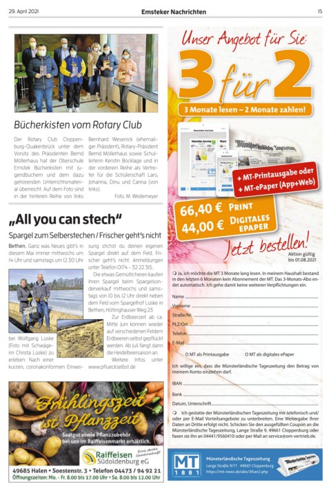 kurzen, coronakonformen Einwei- www.pflueckselbst.de Ich willige ein, dass die Münsterländische Tageszeitung den Betrag von