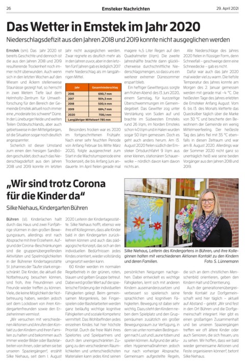 Emstek (sm). Das Jahr 2020 ist Jahr nicht ausgeglichen werden. magere 4,5 Liter Regen auf den Alle Niederschläge des Jahres
