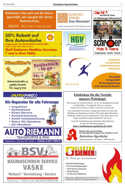 Cloppenburg - Nicolaus-Otto-Straße 2 - Telefon: 0 4471-7098 30 Julian Bergmann, Am Markt 2, 49685 Emstek
