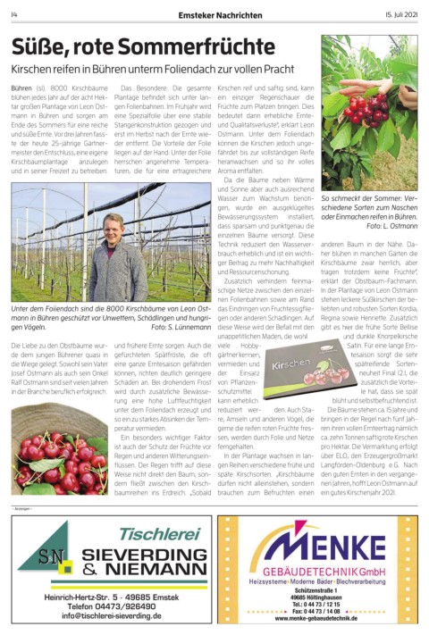 te der heute 25-jährige Gärtner- der entfernt. Die Vorteile der Folie können die Kirschen jedoch unge-