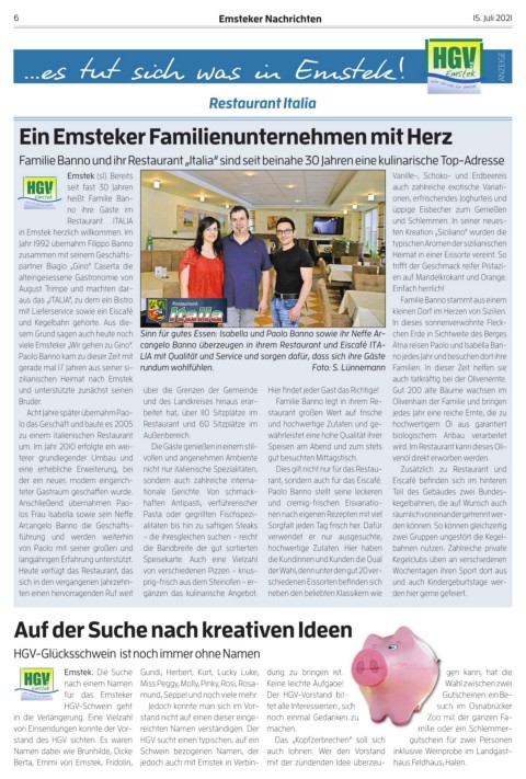 aus das „ITALIA“, zu dem ein Bistro FamilieBannostammtauseinem